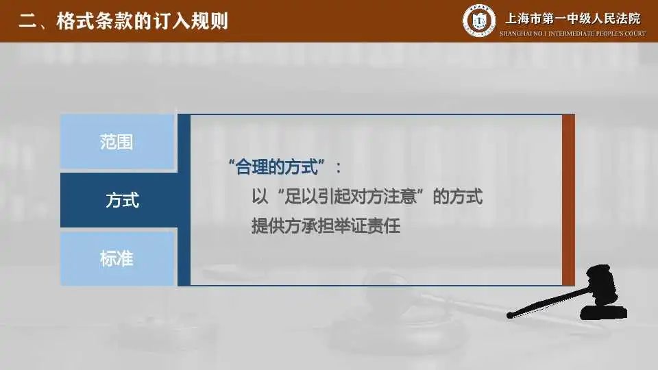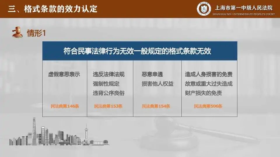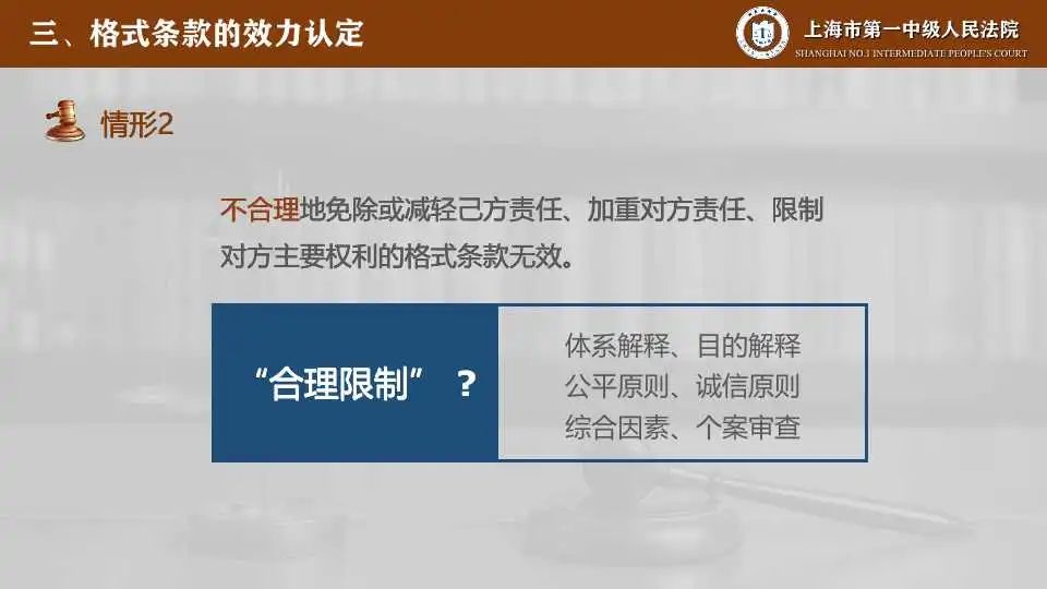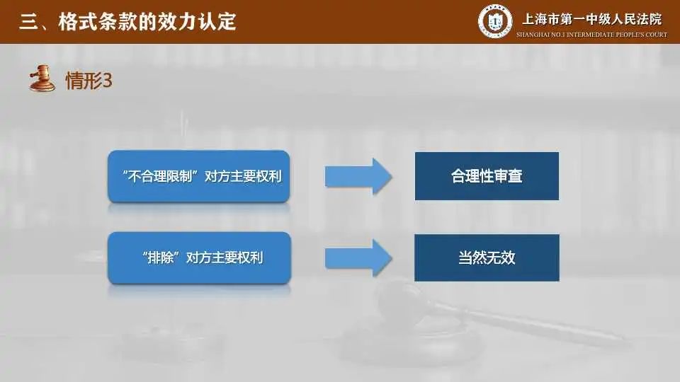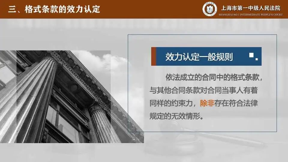 订入规则的触发是由当事人启动的,必须由当事人提出主张,才能进入司法审查范围。这一点,与格式条款的效力认定不同。格式条款的效力认定,是由法院依职权审查的。下面,我们就进入格式条款制度的核心:效力认定。