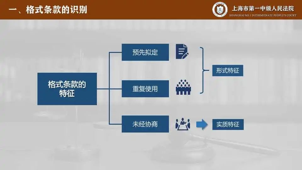 要精准识别出格式条款,就要把握格式条款的三大特征:预先拟定、重复使用、未经协商。