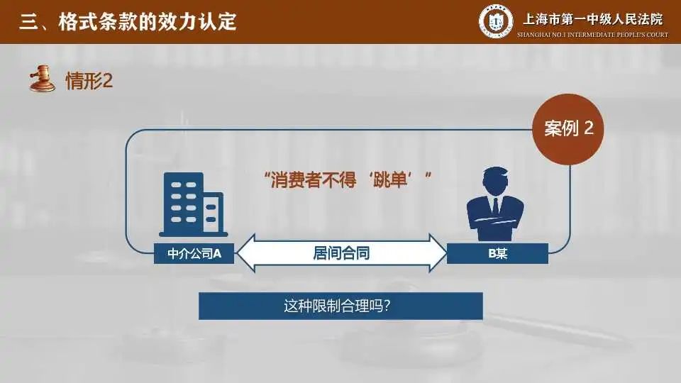 我们认为,合理。消费者利用了中介公司的信息和服务却绕开中介公司的跳单行为,有违公平与诚信原则。此处的限制是对消费者的合理限制,是对中介公司合法权益的保护,也有利于正常的交易秩序。所以,这种格式条款并非无效条款。实践中,若限制性格式条款系企业的合理化经营所必需,或免除的是一般过失责任,那么此类条款就应当有效。