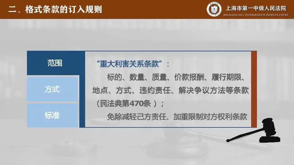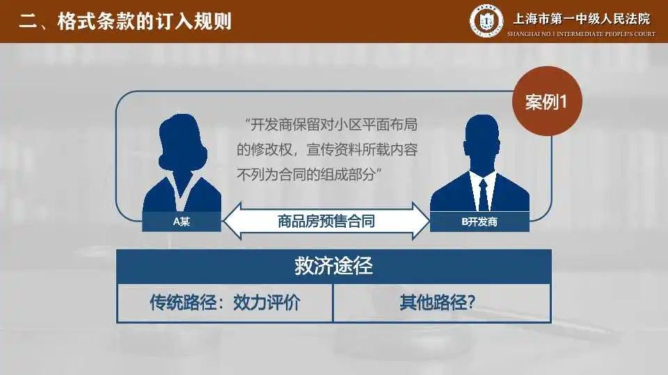 只有符合上述特征要件,才能被认定为格式条款。而准确识别出格式条款,我们才可以适用格式条款制度下相应的特殊规则。比如:接下来讨论的格式条款的“订入规则”。