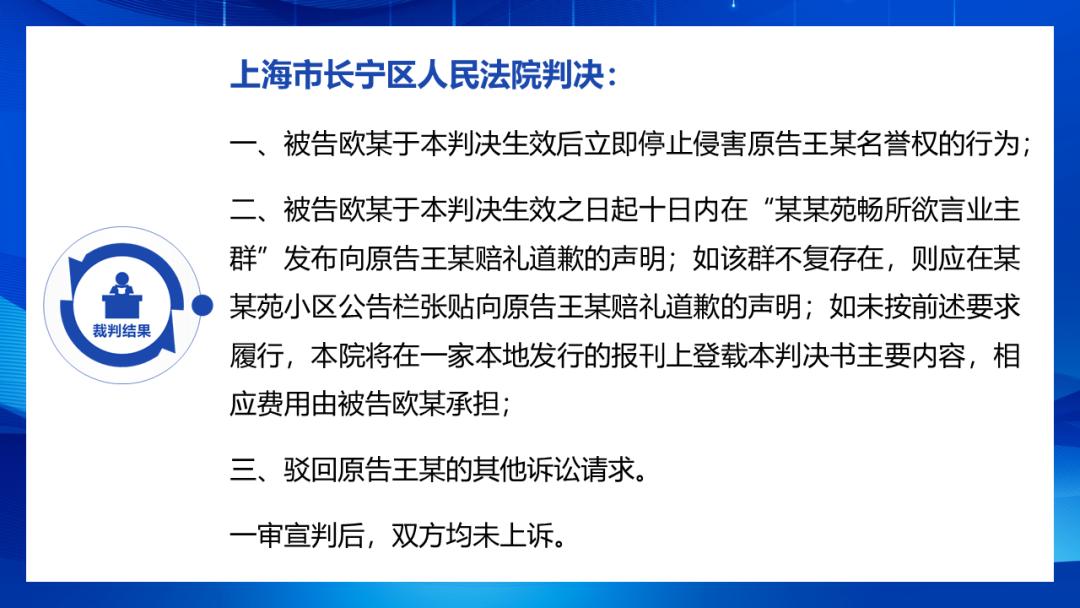 原、被告均系上海市长宁区某小区(以下简称涉诉小区)业主。原告曾经担任涉诉小区业委会主任一职。自2020年5月至2020年10月期间,被告在涉诉小区微信群内针对包括原告在内的业委会履职情况发表被控侵权言论29项。