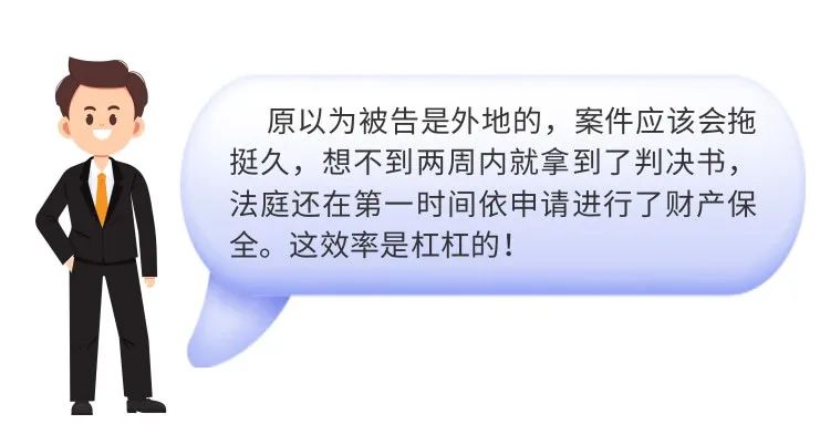 今年2月份,该企业因被拖欠货款60万元诉至法庭,而二被告为外地户籍且联系不上,故无法组织诉前调解。该案遂进入涉企案件绿色通道,承办法官在第一时间依企业申请进行了诉讼保全,并及时安排人员到被告家中进行送达,每个程序都实现了无缝对接,两周内就审结该案。