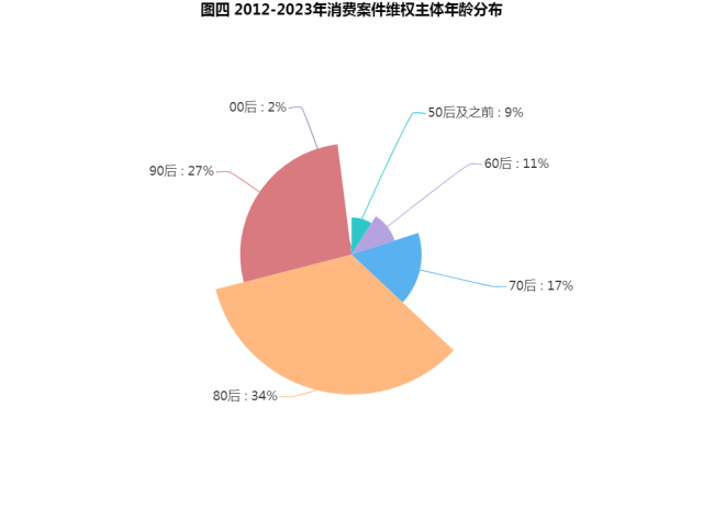 北京三中院立案庭副庭长 邓青菁:2013年至2023年,北京三中院受理并审结的消费纠纷案件中,“80 后”消费者比重最高,为34%;“90后”消费者比重位居第二,为 27%,“80后”以及“90后”消费者维权的案件数量已超过全部这类型的案件的六成,成为消费维权的主流群体。