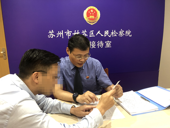 苏州市姑苏区检察院检察长徐翔(右一)正在对信访人进行释法说理