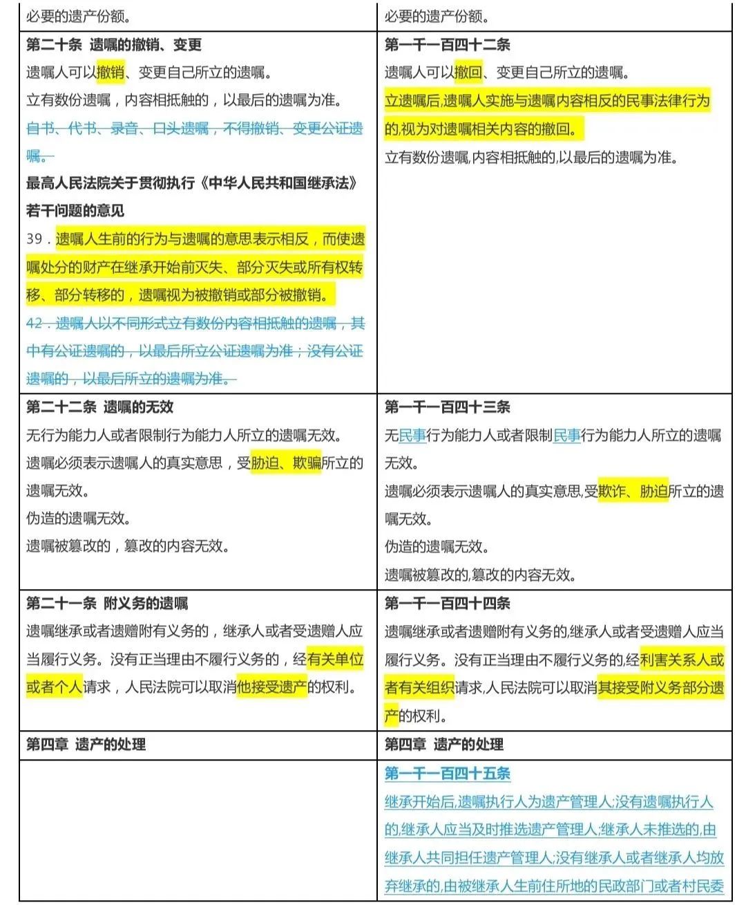1.增加了打印和录像两种新的遗嘱形式(第1136、1137条)。