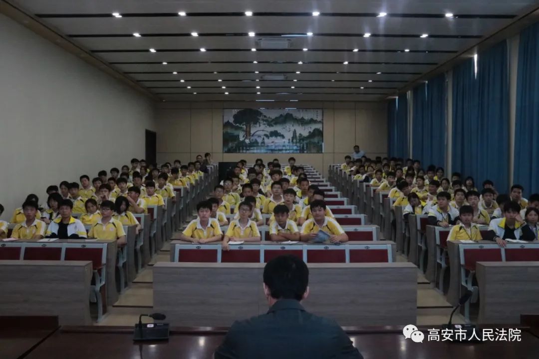 9月27日,高安市人民法院法官来到吴有训实验学校,向该校初三年级学生上了一堂法治理教育课,课堂旨在通过讲解法律知识,增强青少年学生对法律法规的了解,在青少年群体中播下法治的种子,促进形成初步的法治概念,争做新时代法治社会好青年。