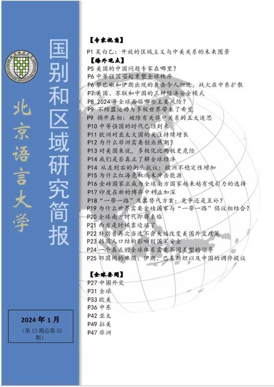 北京语言大学国别和区域研究院成立于2017年1月,同时承担着教育部国际合作与交流司委托的“高校国别和区域研究工作秘书处”相关职能。我们以推动全国高校的国别和区域研究工作为己任,汇聚全国各方力量,促进学术交流合作,为国别和区域研究的科学研究、人才培养、资政服务和国际交流提供平台。本院编辑的《国别和区域研究简报》每月为读者提供国际新闻动态和观点,并特邀海内外知名专家学者就当前热点问题撰写时评。