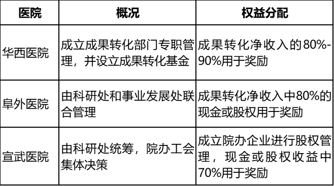 国家《成果转化法》规定科技完成单位对成果完成人的奖励要在50%以上,而部分医疗机构单独制定成果转化管理办法,规定用于项目组奖励的比例均在70%以上,保障医院、科室和项目组的权益。