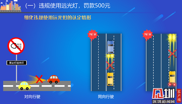 记者了解到,新颁布的《深圳经济特区道路交通安全违法行为处罚条例》对不系安全带、开车乱变道、乱用远光灯、斑马线不礼让行人等有了新的规定。同时市交警局副局长冯新毅表示,本次修订《处罚条例》,也是对中央支持深圳建设中国特色社会主义先行示范区、要求深圳成为法治城市示范,在立法层面上的一次重要响应。