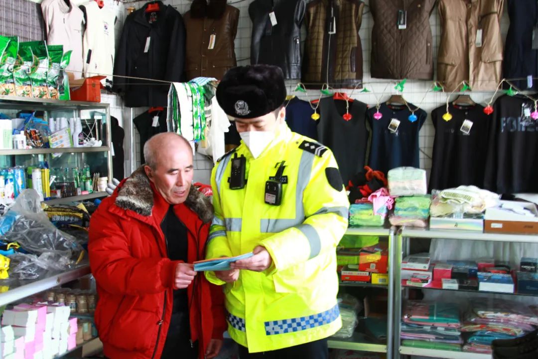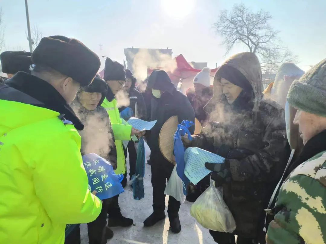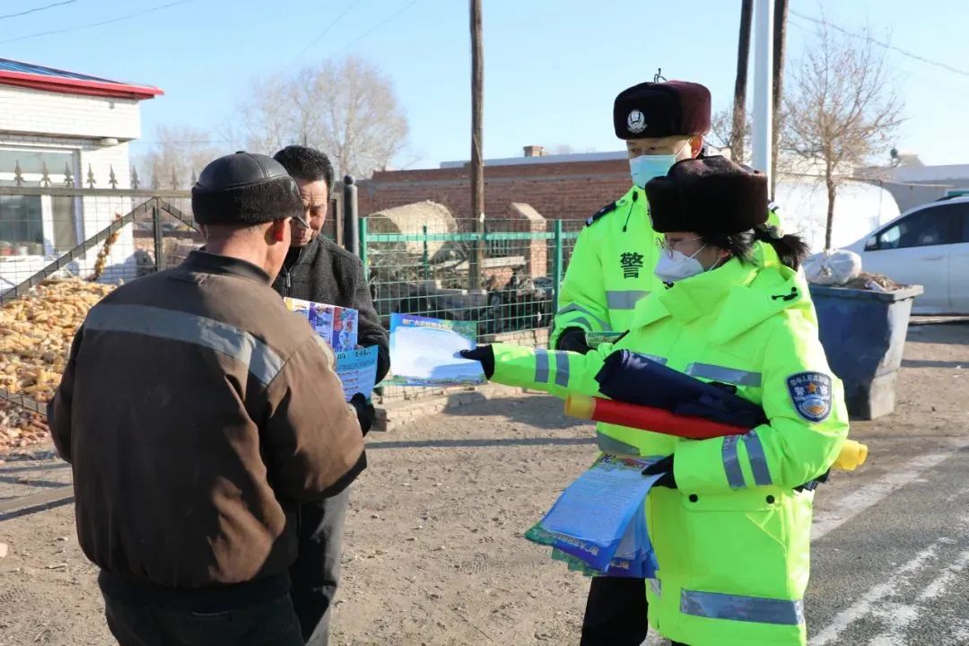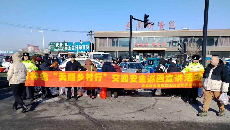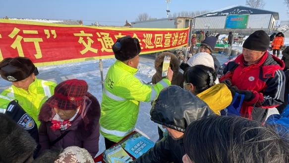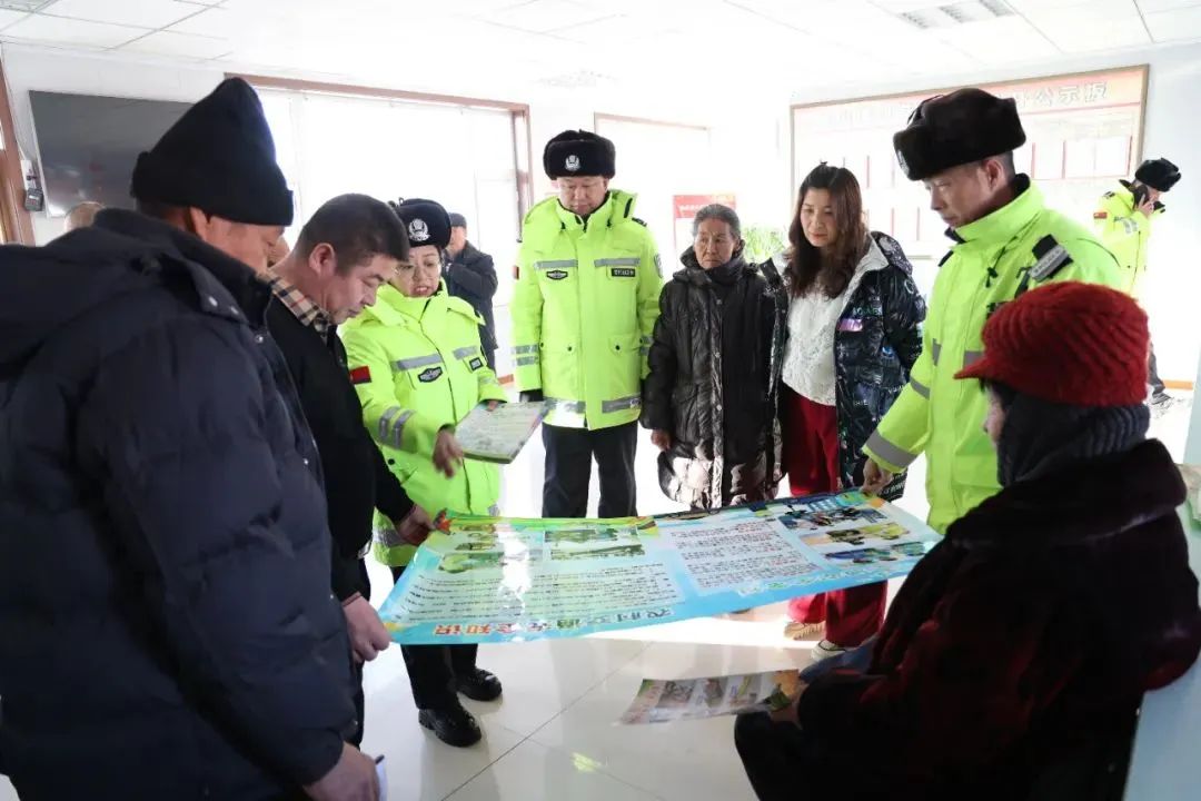 吉林市公安局交巡警支队永吉大队城区中队组织民警走进辖区官马村,开展冬季交通安全宣传活动。