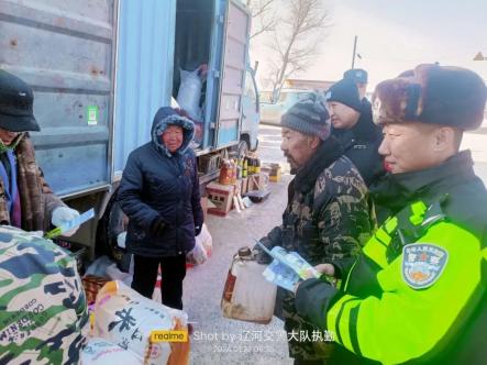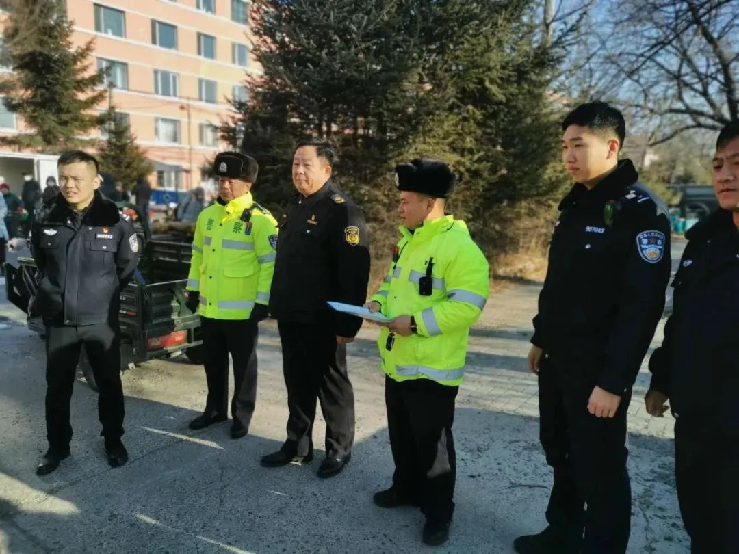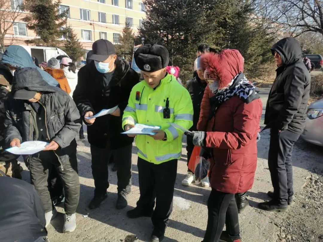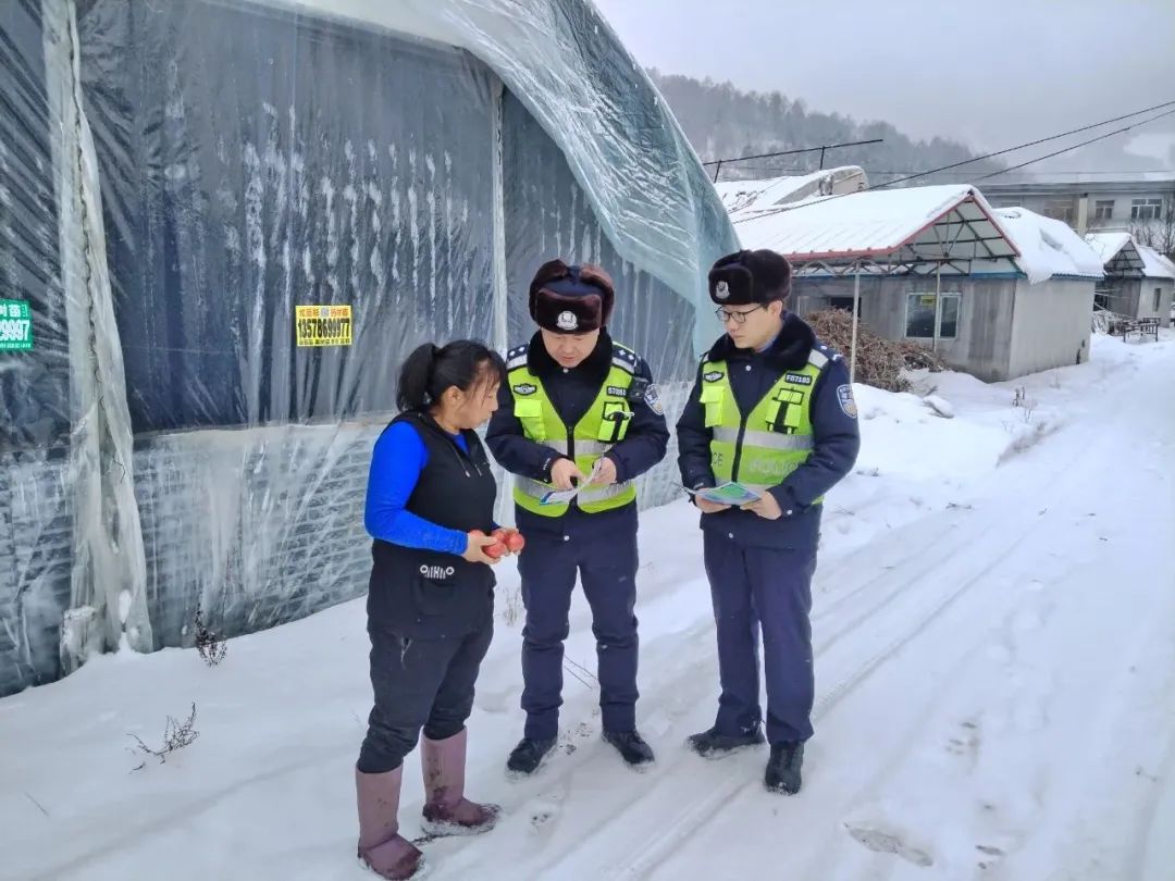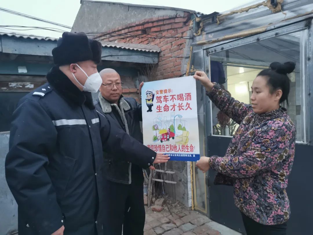 吉林市公安局交巡警支队永吉大队城区中队组织民警走进辖区官马村,开展冬季交通安全宣传活动。
