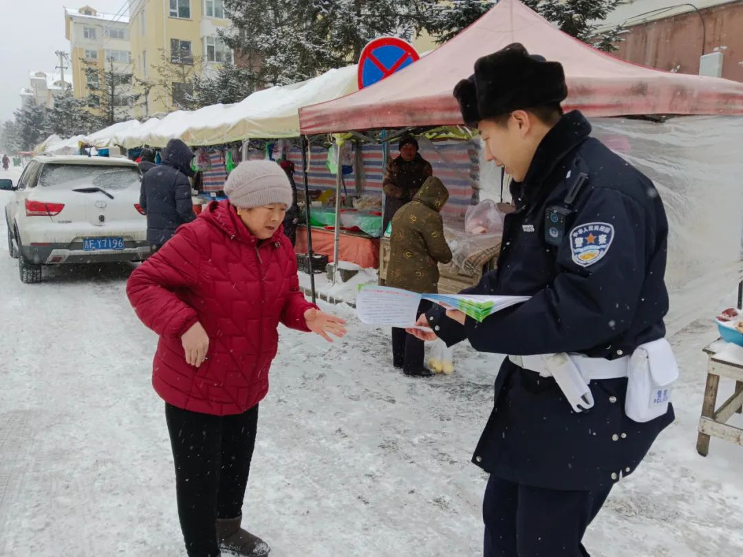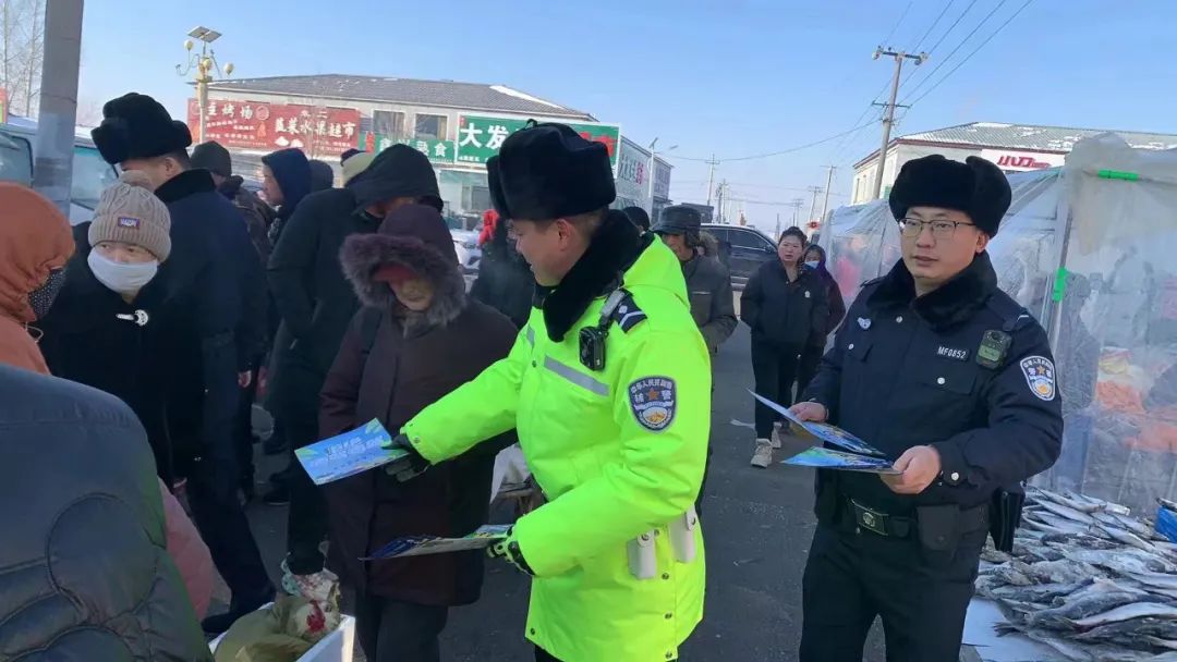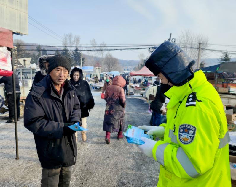 春节即将来临,四平市公安局交管支队辽河大队组织民警深入农村集市,开展交通安全宣传警示教育活动。