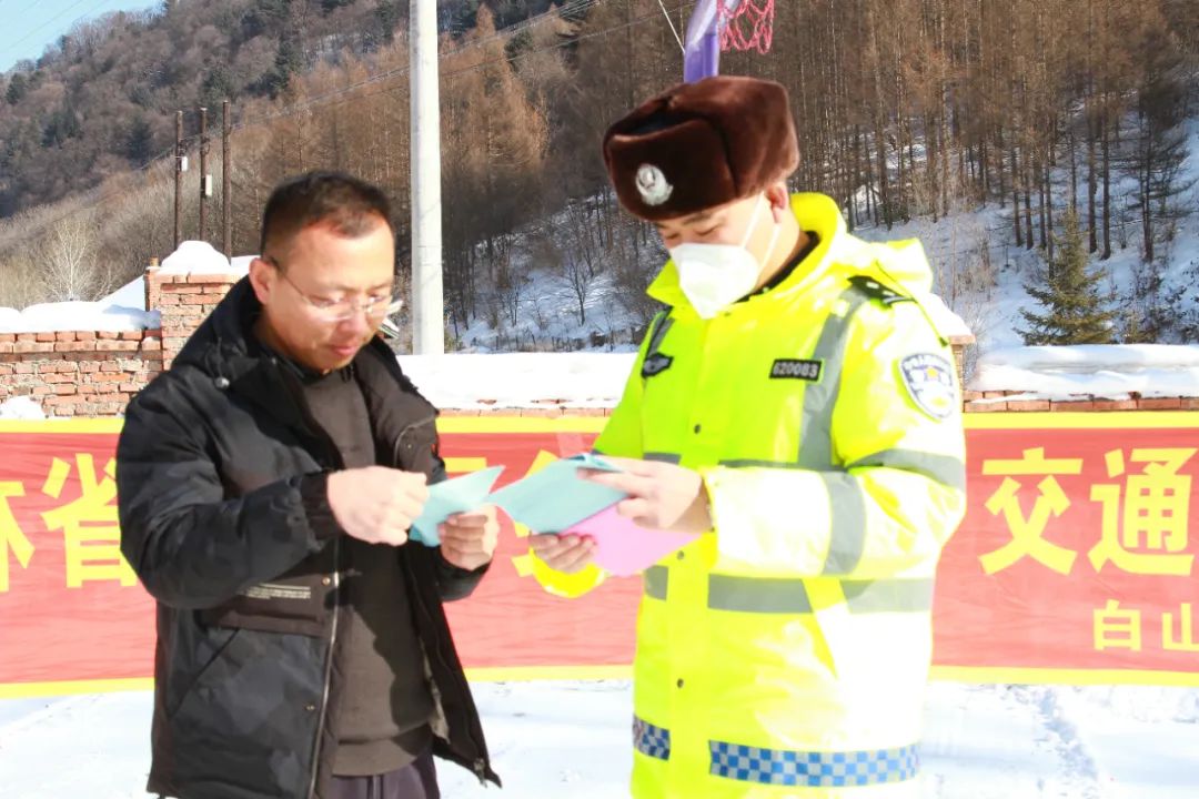 1月31日,长白山公安局交警支队组织民警走进辖区大集,开展春季“涉农”交通安全宣传活动,累计发放宣传材料200余份,宣传教育200多人。