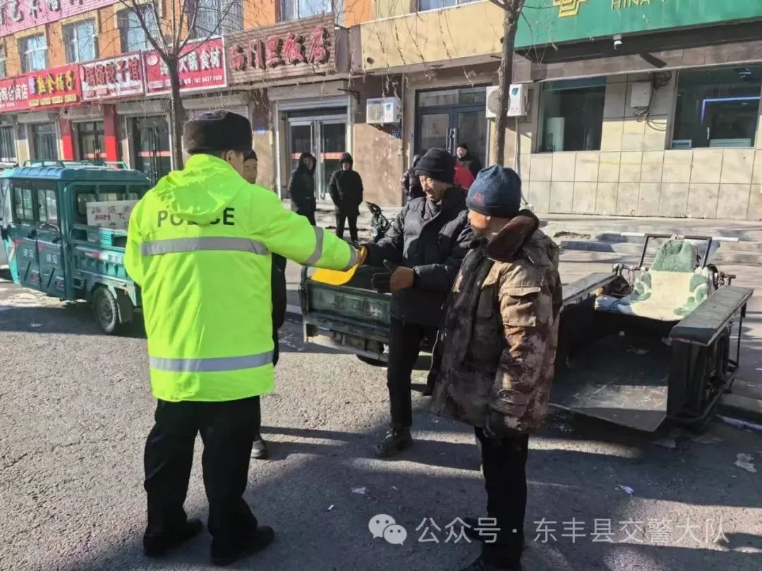 1月25日,辽源市公安局交警支队东丰大队组织民警走进辖区,以“一盔一带 安全常在”为主题开展涉农交通安全宣教活动。