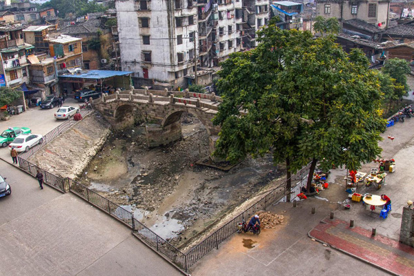 异地迁建前后的三通桥(迁建前摄于1994年,迁建后摄于2013年1月)