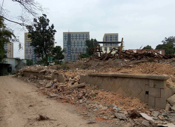 因全国首届青运会建设项目而被拆的“最短命文物”(从2015年1月22日对外公布文物身份到2015年2月4日被拆除不到一个月)福建省福州市仓山区建新镇台屿横龙陈祺厝,福州市仓山区文物部门遵照法律程序,两次发文给有关建设单位,有关建设单位却依然擅自拆除文物。(第一张被拆前摄于2014年9月,第二张被拆后摄于2015年3月)