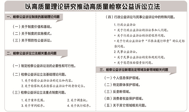 高质量的理论研究既是对实践经验的总结提炼,也为检察公益诉讼立法提供坚实的理论支撑。2023年12月25日,中国法学会检察学研究会公益诉讼检察专业委员会正式成立,必将进一步凝聚研究合力、提升研究质效、形成更多优秀研究成果。