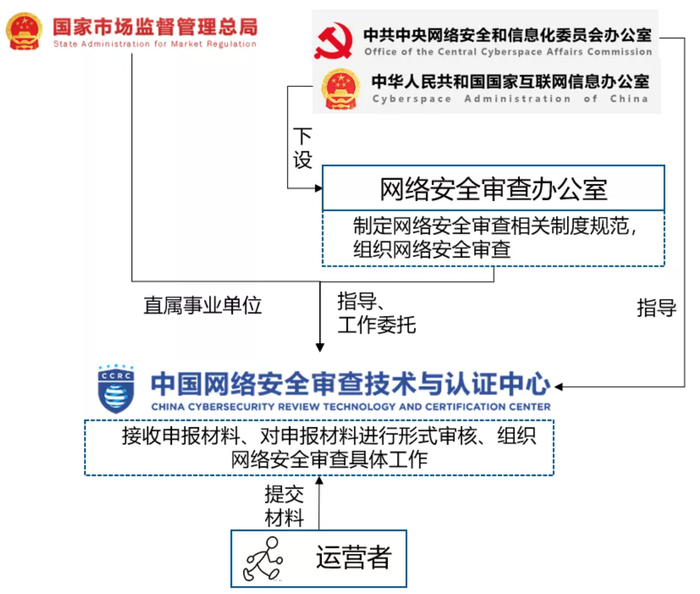 从机构职能的角度,此次发布通告的网络安全审查办公室设在国家互联网信息办公室下,负责制定网络安全审查相关制度规范,组织网络安全审查,具体工作委托中国网络安全审查技术与认证中心承担。