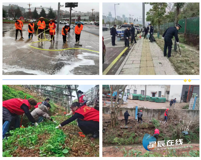 芙蓉区积极开展市容环卫“四清”行动,一是组织街道社区工作人员、环卫工人、志愿者6800余人次,120余台车,清理树枝、积雪、绿化带垃圾和清理城市牛皮癣。二是以“陈年垃圾清零”为目标,全方位清除积存生活垃圾、建筑垃圾。同时,区委督查室、区政府督查室和区城管局交叉编成3个片区督查组,整合区环卫中心督查力量,组成13个督查小组,开展督查110余人次,对“芙蓉保洁净、清爽迎新年”活动进行全面督查。