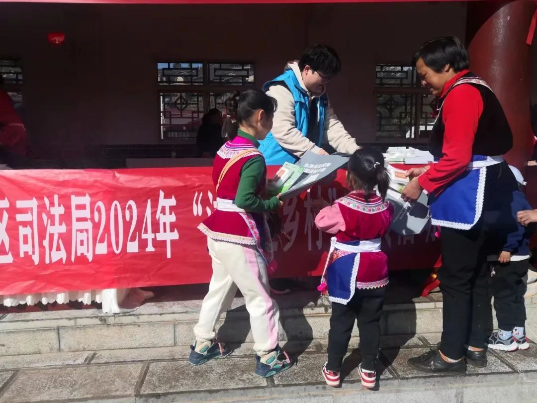 为进一步增强基层群众法治意识,丰富普法宣传形式,助推乡村振兴,促进民族团结。根据西山区2024年文化科技卫生“三下乡”活动工作安排,1月30日,西山区司法局、区普法办、团结司法所开展“法律进乡村”普法宣传活动。组织普法志愿者和法律明白人到西山区团结街道龙潭社区乐居少数民族法治文化主题公园,为辖区群众送上新年普法“大礼包”。