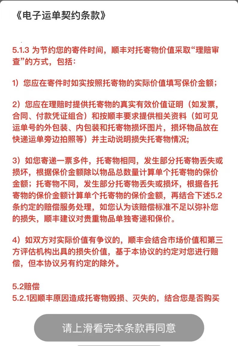 记者查询发现,绝大多数快递公司的线上程序,在用户下单前均要求用户勾选“快递协议”,这些格式化的协议中,对于快递保价、赔偿的规则,各快递公司均有自己的规定。用户如果不同意“快递协议”就不能寄送快递。