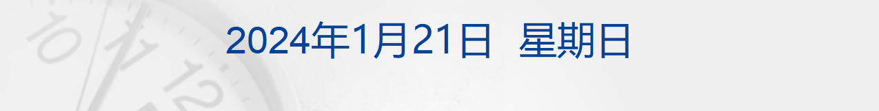 NO.1 国家金融监督管理总局召开党委扩大会议 1月20日,金融监管总局党委书记、局长李云泽主持召开党委(扩大)会议。会议强调,一是坚定不移走好中国特色金融发展之路。二是以金融高质量发展推进金融强国建设。三是全面落实强监管严监管要求。四是有效防范化解重大金融风险。五是更好统筹金融开放和安全。六是大力培育中国特色金融文化。 NO.2 八部门重磅发文 1月20日,记者从国家卫生健康委了解到,国家卫生健康委办公厅、全国爱卫办、民政部办公厅等8个部门日前联合印发《关于全面开展健康家庭建设的通知》,全面部署健康家庭建设工作,以健康家庭构筑健康中国牢固根基。健康家庭建设的基本条件包括:家庭主要成员在本村(社区)居住满1年;家庭成员与当地村(社区)卫生服务机构实行责任医师签约制度,接受家庭签约医生的诊疗和家庭健康指导员健康生活方式的指导等;家庭成员健康状况良好。(新华社) NO.3 2023年社会消费品零售总额47.15万亿元 同比增长7.2% 1月20日,商务部消费促进司负责人谈2023年12月我国消费市场情况。12月份月社会消费品零售总额4.36万亿元,同比增长7.4%。全年社会消费品零售总额47.15万亿元,同比增长7.2%,最终消费支出对经济增长的贡献率达82.5%,消费对经济发展的基础性作用不断增强。 NO.4 章轲同志任国家医疗保障局党组书记 2024年1月20日,中央组织部有关负责同志出席国家医疗保障局领导干部会议,宣布中央决定:章轲同志任国家医疗保障局党组书记。(国家医疗保障局) 于洪涛任哈尔滨市委书记 1月20日,哈尔滨市召开领导干部会议,宣布中共中央关于哈尔滨市委主要负责同志的任职决定。省委常委、组织部部长杨博宣读中共中央决定。中共中央批准,于洪涛同志担任中共哈尔滨市委书记。(哈尔滨日报) 廖林同志任中国工商银行党委书记 2024年1月20日上午,中央组织部有关负责同志出席中国工商银行干部会议,宣布中央决定:廖林同志任中国工商银行党委书记,免去陈四清同志的中国工商银行党委书记职务。(中国工商银行) NO.5 上海:加强境内外金融市场互联互通 据上海发布消息,上海市委常委会1月20日举行扩大会议,传达学习省部级主要领导干部推动金融高质量发展专题研讨班精神。会议指出,要以制度型开放为重点推进金融高水平对外开放,更好统筹在岸和离岸业务,加强境内外金融市场互联互通,提升跨境投融资便利化水平,完善对共建“一带一路”的金融支持。 NO.6 除夕夜举办跨年“烟花秀”?重庆辟谣 据“重庆辟谣”微信公众号消息,近日,网传视频称“重庆将在除夕夜举办跨年烟花秀”,微信群、朋友圈等还流传着不少“重庆2024跨年烟花攻略”。经向相关部门核实,网传信息均系不实信息。 NO.7 广东将发放超千万元文旅消费券 据广东发布消息,广东省文化和旅游厅即将启动广东“粤消费 粤精彩”消费券(文旅专场)活动,在全省范围内发放超千万元文旅消费券,活动报名时间为1月23日10:00至1月25日12:00。 NO.8 河南一学校发生火灾 应急管理部已派出工作组 1月19日23时00分,河南省南阳市方城县119指挥中心接报警,独树镇砚山铺村英才学校一宿舍发生火灾,事故造成13人遇难,1人受伤。接报后,应急管理部有关负责人带队的工作组赶赴现场指导事故救援、火灾调查和善后处置等工作。(央视新闻) NO.9 江苏武进一企业因粉尘爆炸致8死8伤 记者20日从常州市武进区应急管理局获悉,1月20日3时38分,位于武进区南夏墅街道的常州燊荣金属科技有限公司生产车间发生粉尘爆炸,共造成8人死亡、8人轻伤。事故现场救援已结束,调查和善后工作正在开展中。(新华社微博) NO.10 国际新闻 以色列对叙利亚大马士革发动空袭 据伊朗“pressTV”20日的消息,在当天以色列针对叙利亚首都大马士革实施的空袭中,已有5名伊朗军事顾问死亡。(央视新闻) 伊拉克境内一驻有美军的基地遭袭 当地时间1月20日,据路透社报道,一名美国官员称,伊拉克西部安巴尔省有美军驻扎的阿萨德空军基地遭到袭击,有美军人员在袭击中受轻伤。伊拉克民兵武装“伊斯兰抵抗组织”宣称对此事负责。(央视新闻) 美联邦航管局将对波音747货机事故展开调查 日前,阿特拉斯航空公司的一架波音747-8型货机因发动机故障,在起飞后不久紧急返回美国迈阿密国际机场。当地时间19日,美国联邦航空管理局表示,将对事故进行调查。 NO.1 中金基金董事长、总经理变更 中金基金管理有限公司:1月20日,中金基金管理有限公司发布公告:2024年1月19日起,董事长(法定代表人)胡长生因工作安排离任,未转任公司其他工作岗位,且不再代为履行公司总经理职务;李金泽担任公司董事长(法定代表人)、宗喆担任公司总经理。 点评:董事长、总经理变更可能会对公司战略和业绩产生重大影响。 NO.2 北京大学发布严正声明 北京大学:北京大学标识管理办公室发布声明称,近日,我办接到师生举报,称泽鑫德彬科技(北京)有限公司、共青城新财富电子商务有限公司,常年以“在校生、校友”的名义,在多个网络平台宣传销售印有“北京大学”系列商标标识的羽绒服产品。为维护我校及广大师生和消费者的权益,严正声明如下:我校从未授权泽鑫德彬科技(北京)有限公司和共青城新财富电子商务有限公司代加工生产和销售印有“北京大学”“PEKING UNIVERSITY”“北大”“PKU”“学校徽志”标识的羽绒服