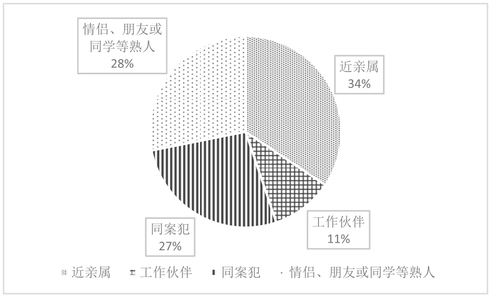 通过分析146篇裁判文书,发现作虚假供述的行为人与当事人有很强的社会纽带关系(见图四),比如在共同犯罪中,多出现同案犯作虚假供述的现象,在交通肇事罪、危险驾驶罪中,多是同车人或近亲属或其他熟人作虚假供述;在经济类型犯罪(如非法经营罪、非法采矿罪、销售假冒注册商标的商品罪、虚开增值税专用发票、用于骗取出口退税、抵扣税款发票罪等)多是工作伙伴作虚假供述。因此应针对不同的案子,重点排查其相关社会关系,判断是否为虚假认罪认罚。