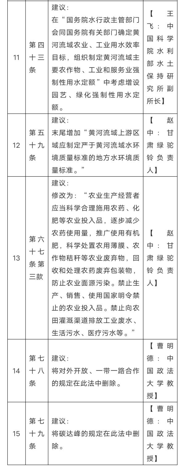 《黄河保护立法草案》(征求意见稿)详细条款修改意见表