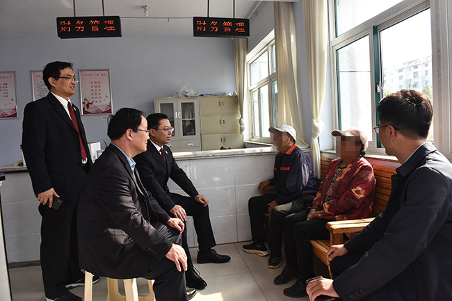 日照市岚山区检察院办案检察官到案发地村委会了解当事双方的矛盾根源。