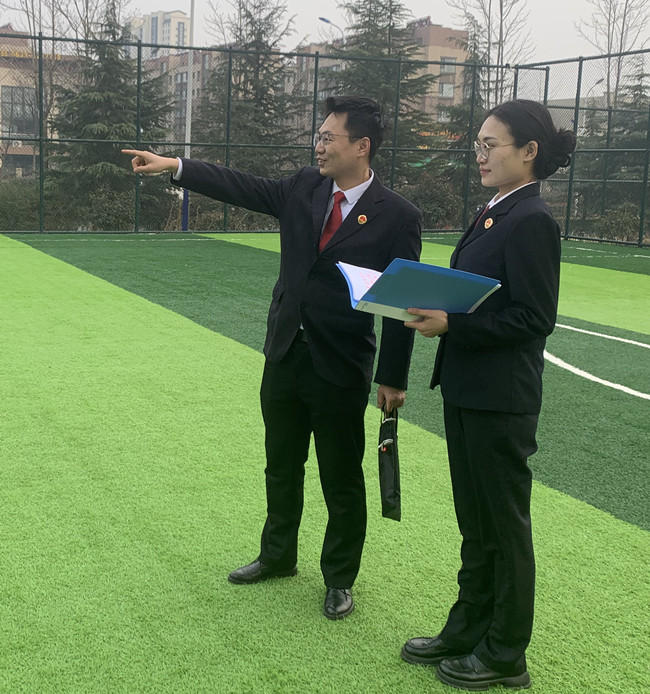 日照市东港区检察院依法监督相关部门将某垃圾场改建为运动场后,检察官对办案效果进行回访。