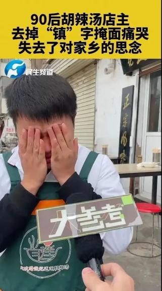 一些胡辣汤店担心被诉,也选择连夜拆除招牌。一则视频在网上走红,开封一家胡辣汤店的年轻老板一度掩面哭泣,说这家店他们家已经开了25年,如今摘掉“镇”字,感觉失去了对家乡的思念。