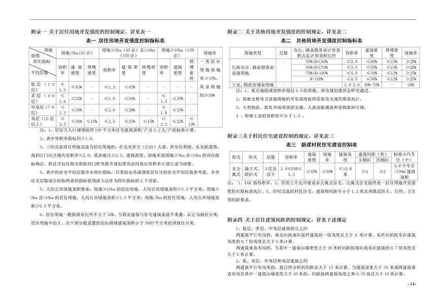 居住用地容积率、建筑密度和绿地率应当符合附录一《关于居住用地开发强度的控制规定》有关规定。