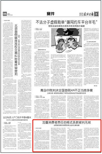 原标题:《法治日报|全国首例!加重消费者责任的格式条款被判无效!》
