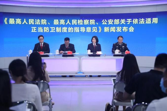 9月3日,最高人民法院召开新闻发布会,发布《最高人民法院、最高人民检察院、公安部关于依法适用正当防卫制度的指导意见》(以下简称《指导意见》)及典型案例。最高人民法院研究室主任姜启波,最高人民检察院法律政策研究室副主任劳东燕,公安部法制局二级巡视员曾斌出席发布会并介绍相关情况,最高人民法院新闻发言人李广宇主持发布会。