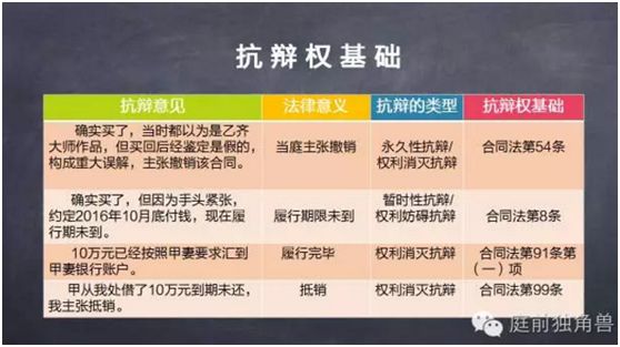 针对法律上效果的才是真正的抗辩(Eg.履行期限未到OR履行完毕)