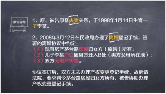 甲(男)、乙(女)双方原系夫妻关系,1999年结婚,2005年生育一女丙。2006年,甲乙共同购买了一套霞飞路房屋,登记在甲、乙、丙三人名下,产权形式为共同共有。2011年,原、被告双方在民政局办理了离婚登记手续,离婚协议中约定:1、离婚后,丙随乙共同生活,甲每月支付抚养费人民币1500元;2、甲在霞飞路房屋中的权利归乙所有。之后,甲乙到房产交易中心办理了产权变更登记手续,去掉了甲的名字,改为乙和丙共同共有。2012年,甲意外得知丙非其亲生女儿,系乙与案外人丁所生,乙予以承认。甲认为当时买房时把丙名字写上去,以及离婚时约定房产归乙是考虑到乙带了孩子,现在证实丙不是双方的亲生女儿,所以起诉至法院,要求霞飞路房屋产权归自己所有。