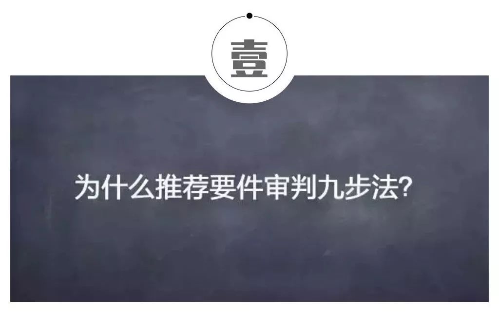 通过以上三个背景知识的梳理,回答一个非常重要的问题:我们为什么要选择并推荐使用要件审判九步法。