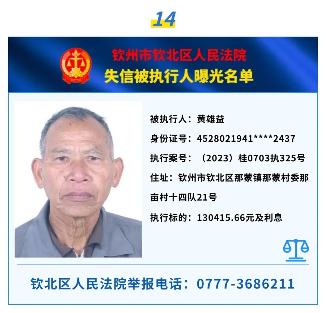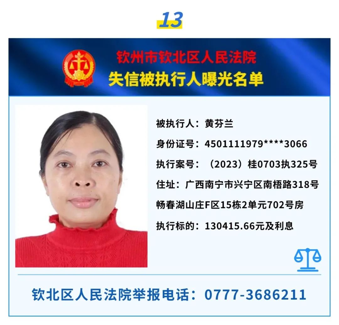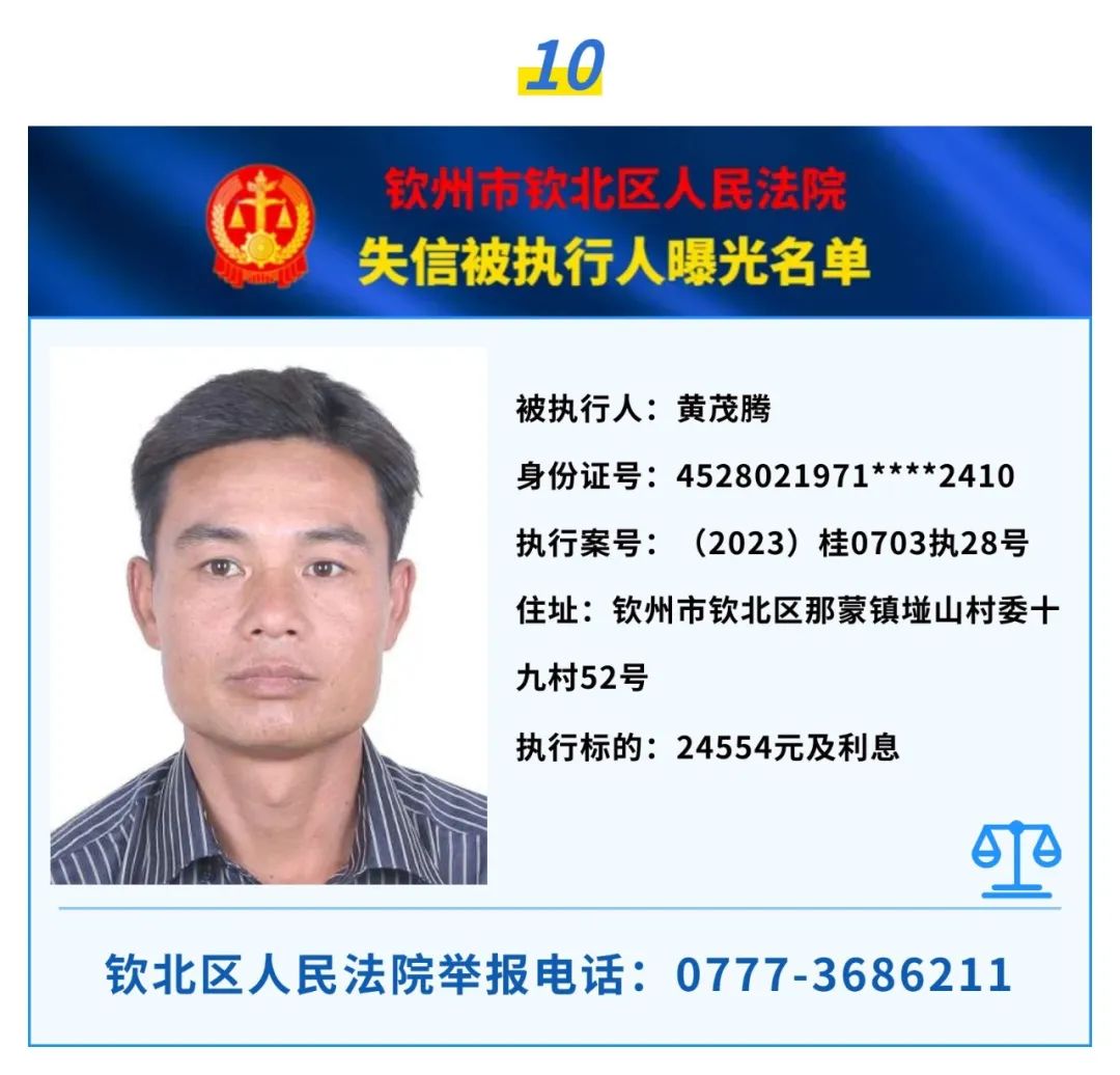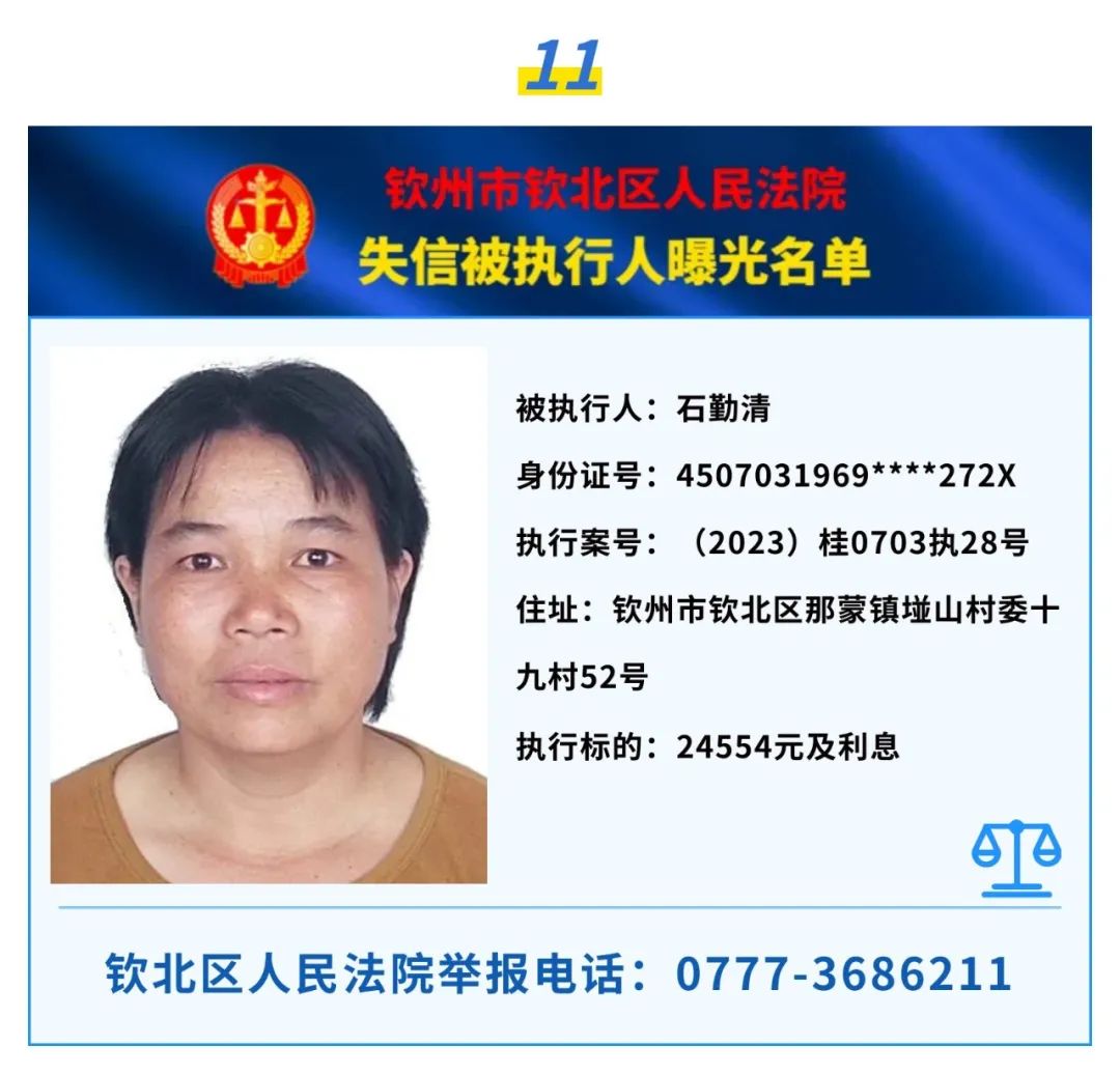 限以上被执行人自本通告发出之日起10日内自行或委托他人到钦州市钦北区人民法院执行局如实申报财产并履行生效法律文书所确定的义务。