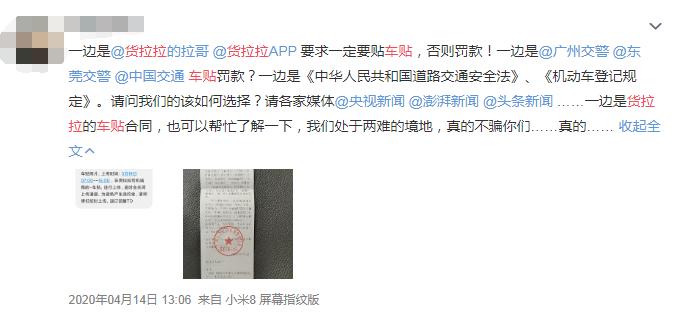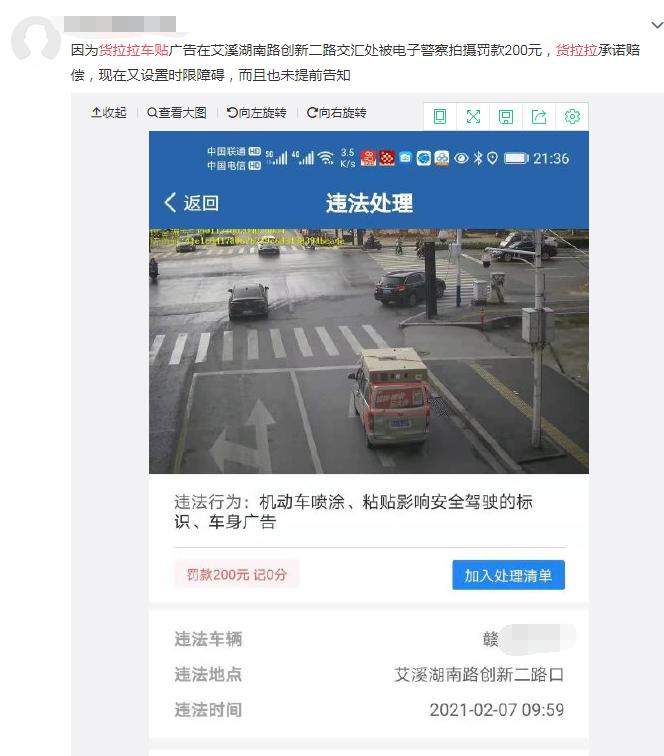 货拉拉又摊上事了!司机左右犯难:贴了广告交警罚,不贴公司罚!货拉拉回应