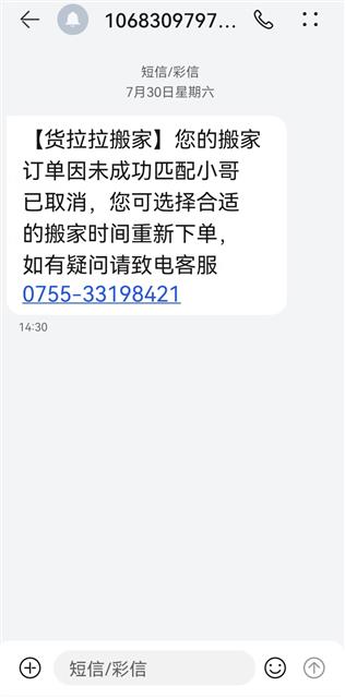 姜女士租住的房屋7月30日到期。方便起见,她提前一周就通过货拉拉微信小程序预约了7月30日下午2时的“无忧搬家”服务。据姜女士回忆,订单生成之后,客服还曾致电姜女士确认细节,明确表示将由3名搬运工和1名司机承接服务,并在29日告知了她司机信息。不料,搬家当天上午10时,货拉拉客服的又一通电话让姜女士傻了眼。