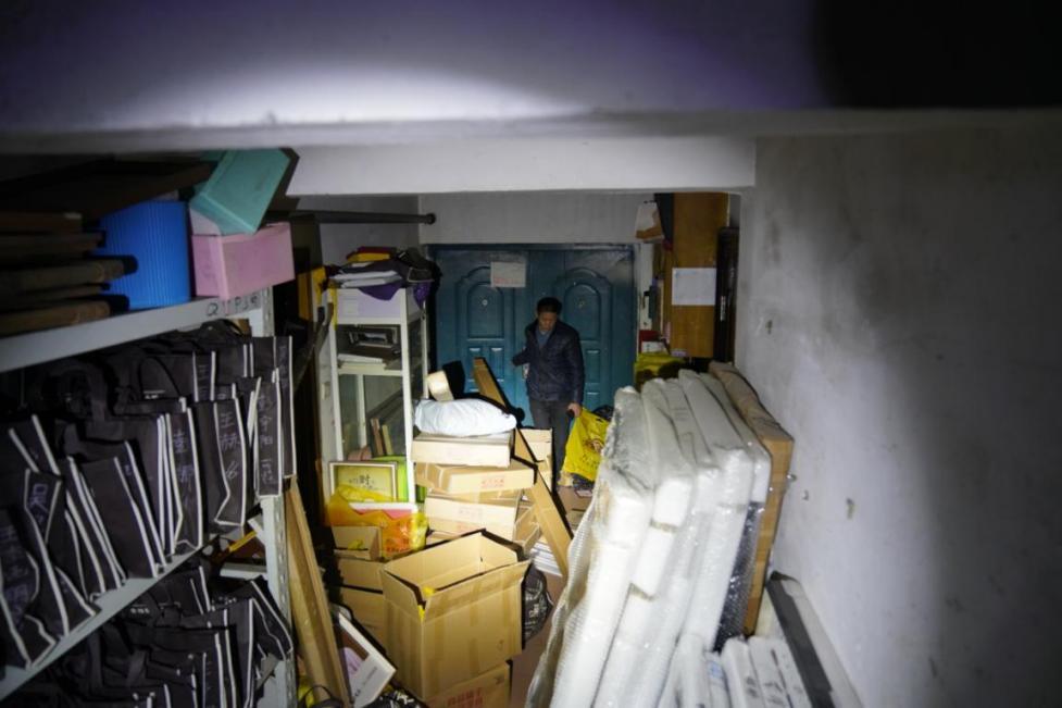 该单位一、二层疏散楼梯间、安全出口被拍摄用的道具、杂物堵塞。