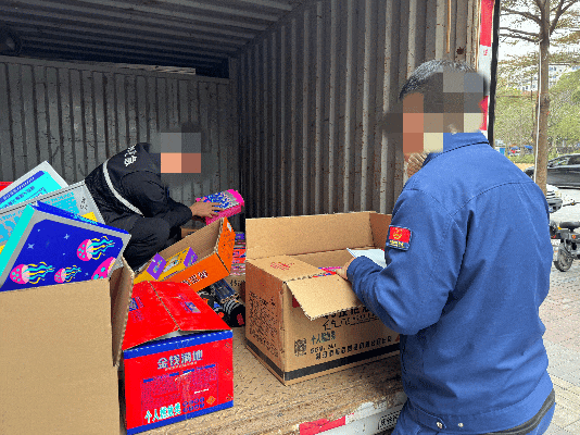 图:2024年1月31日,公安部门根据前期掌握的线索联合应急管理部门在南山镇某村捣毁一个非法销售储存烟花爆竹仓库,现场扣押烟花爆竹40箱,总重量约250公斤,抓获嫌疑人一名。目前,涉案烟花爆竹已扣押,公安机关对嫌疑人潘某作出行政拘留10日的行政处罚。/佛山市应急管理局供图