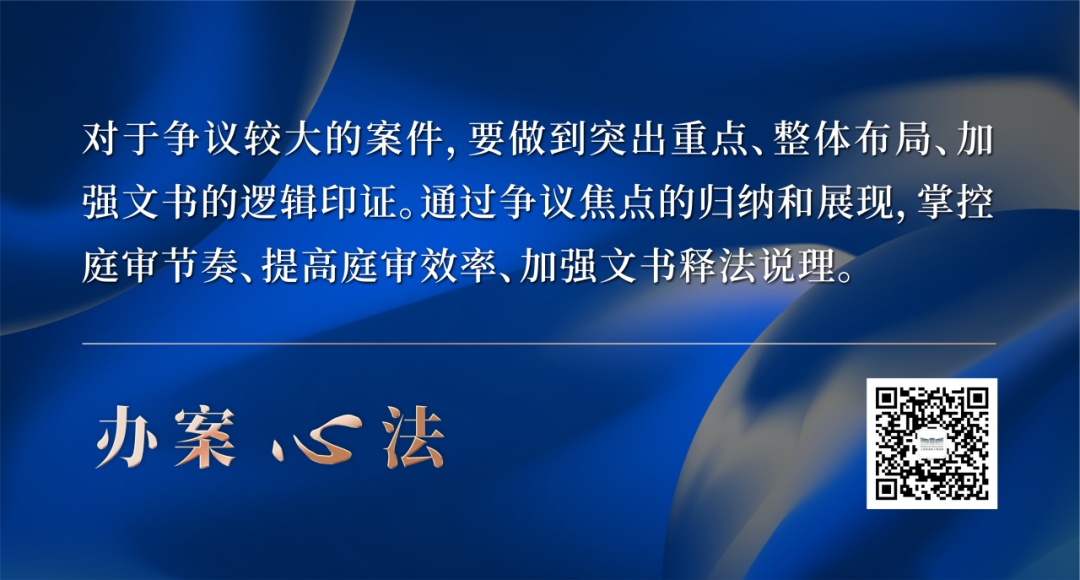 2. 整体布局。注重前后衔接,以争议焦点的寻找、引导、锁定、展开、论证、评析为主线,并整合庭前准备、庭前会议、庭审、文书撰写、判后答疑等流程。
