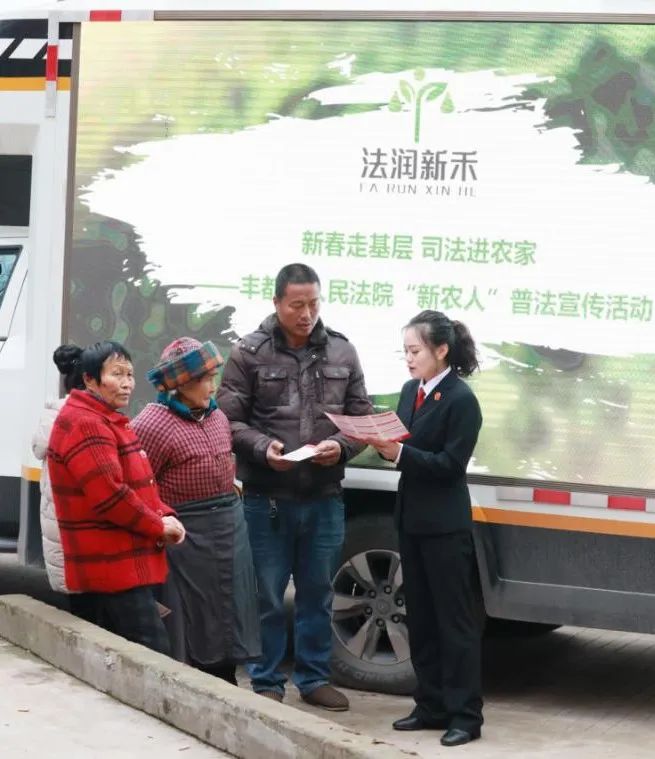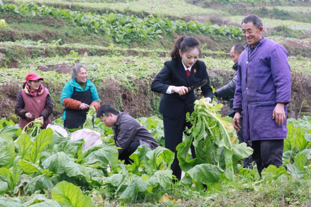 2月里来是新年,2月也是丰都青菜头收购季。2月8日,丰都法院名山人民法庭的干警走进田间地头,开展“新农人”普法宣传活动。