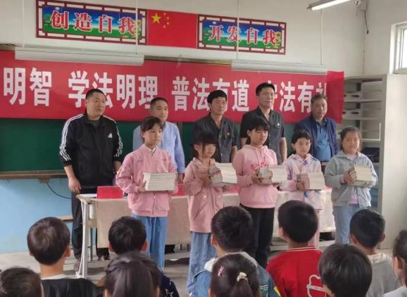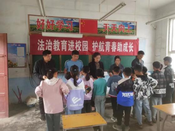 为进一步加强未成年人法治教育,提高未成年人法治观念和自我保护意识,护航未成年人身心健康成长。5月26日,上蔡县人民法院刑事审判庭干警和派驻东岸乡驻村工作队前往结对帮扶的东岸乡王堂、路口、张茂英、刘小庄四个村的小学,在四所学校开展“普法宣传进校园,法润童心助成长”六一系列法治宣传活动。