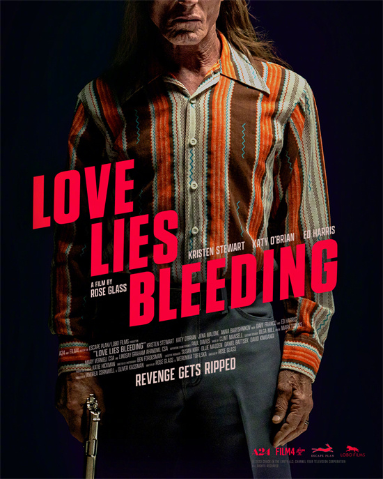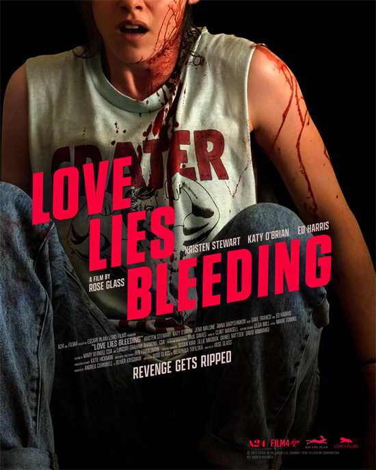 1905电影网讯 近日,由克里斯汀·斯图尔特、凯蒂·奥布莱恩主演的爱情惊悚片《流血之爱》公布角色海报。在海报上,所有演员均以“去头”的形象出现。这些海报突出了他们的身体和服装,以及迸裂出的血浆和暴力工具。