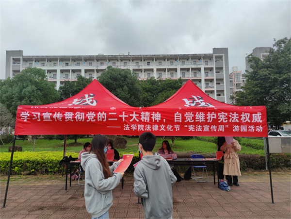 日前,福建工程学院法学院开展宪法宣传周游园活动、宪法宣读活动等,鼓励青年学生学习法治知识,提高法治意识。