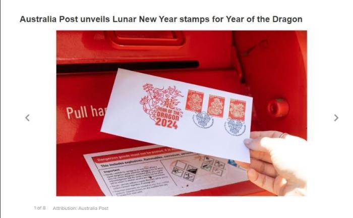 图片澳大利亚邮政近日推出了龙年特别版中国春节邮票。图为澳大利亚第九新闻网站截图