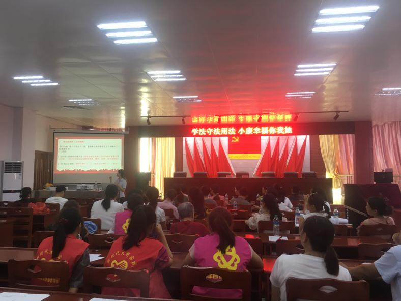 为深入贯彻落实党的十九大精神,积极探索新时代农村社会治理有效途径,切实将实施全市农村“法律明白人”培养工程作为妇女法治宣传的重要载体,进一步增强广大妇女群众尊法学法守法用法的积极性和主动性,7月23日上午,吉安市妇联“法律明白人”培养工程专场讲座在永丰县恩江镇召开,该镇、社区妇联主席及社区妇女小组长、社区妇女群众、巾帼志愿者等共计80余人参加讲座。