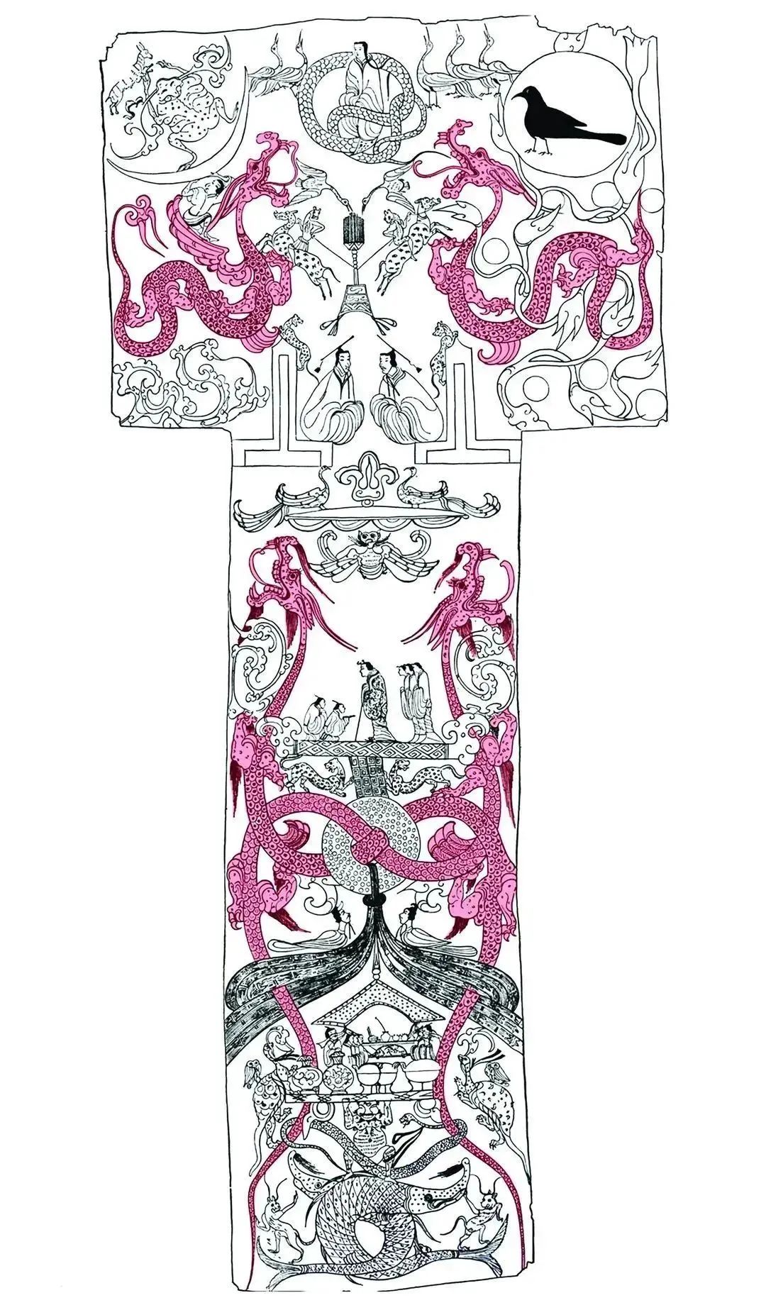 湖南长沙马王堆汉墓出土的T型帛画上的龙。图片据周天《有龙则灵:寻找汉画里的“龙”》